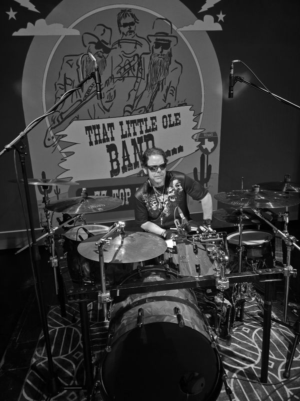Wade brings over 30 years of stage experience to That Little Ole Band, channeling the unmistakable groove and blues-driven feel of ZZ Top’s legendary drummer, Frank Beard. Having performed with a long list of cover and tribute acts, Wade has perfected the art of driving a band with rock-solid time, Texas shuffle swagger, and just the right touch of showmanship. Behind the kit, he’s the steady heartbeat that keeps the crowd moving and the band firing on all cylinders.